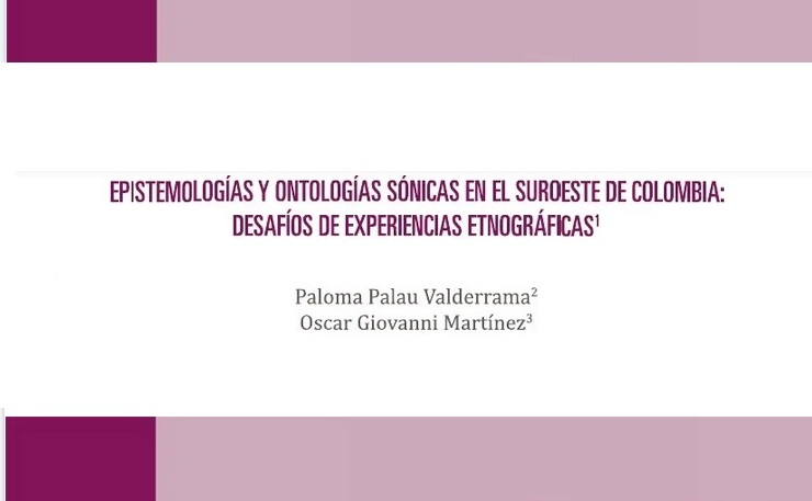 Resumen: Las epistemologías y ontologías sónicas asociadas a los colectivos indígenas y a la población negra del suroeste colombiano surgen articuladas a sus luchas históricas por la vida colectiva y el territorio atravesadas por la colonialidad/modernidad (Quijano, 2000). Se trata de saberes validados mediante la experiencia o epistemologías del sur (Santos, 2019) y de ontologías, en el sentido de cosmopolíticas, donde lo que ha sido entendido como folclor por un oído occidental, tiene también un estatus político (Cadena, 2009). En la discusión sobre los mundos sonoros en la etnomusicología y antropología del sonido aparecen las ideas de acustemología (Feld, 2015) y cosmosónica (Stein, 2015) que no escinden lo epistemológico y lo ontológico mediante la experiencia sónica e intersensorial. En ellas, el cuerpo aparece como un lugar central que nos presenta dos desafíos: como medio de producción de conocimiento intersubjetivo y como vía de compresión etnográfica. En ese sentido, queremos indagar cómo se experimentan las epistemologías y ontologías sónicas de dos colectivos en el sudoeste colombiano, uno afro y otro indígena, señalando los desafíos que esto implicó a partir de etnografías donde el cuerpo tiene un lugar de relevancia. En particular, abordamos prácticas sónicas y musicales locales que se articulan a discursos de marcos políticos y culturales en relación con la dimensión del saber y ser sónico.